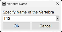 Indicate the other vertebrae of interest by left-clicking in the centers of their bodies (you can move both up and down); names and numbers are assigned automatically