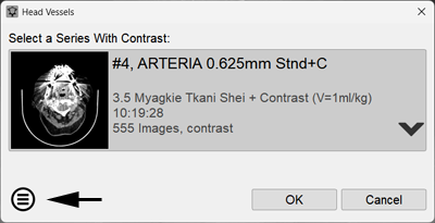 In the window that appears, check that the automatic selection of the series with contrast is correct, click the "OK" button