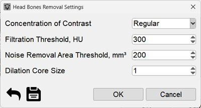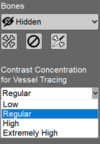 Due to the close proximity of bone structures to vessels, settings for controlling vessel contrast are introduced for correct bone removal and vessel tracing: